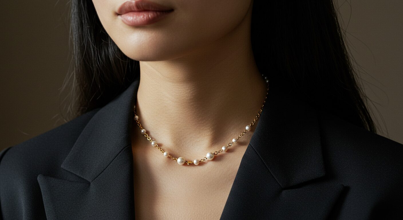 - パールは、クールな印象を与えつつもクラシカルな品格を保ってくれます。トレンドの流れを取り入れる際には、1~2点のアイテムを選ぶことがポイントです。例えば、ゴールドチェーンのネックレスとパールのピアスを組み合わせることで、すっきりとした印象を残すことができます。
