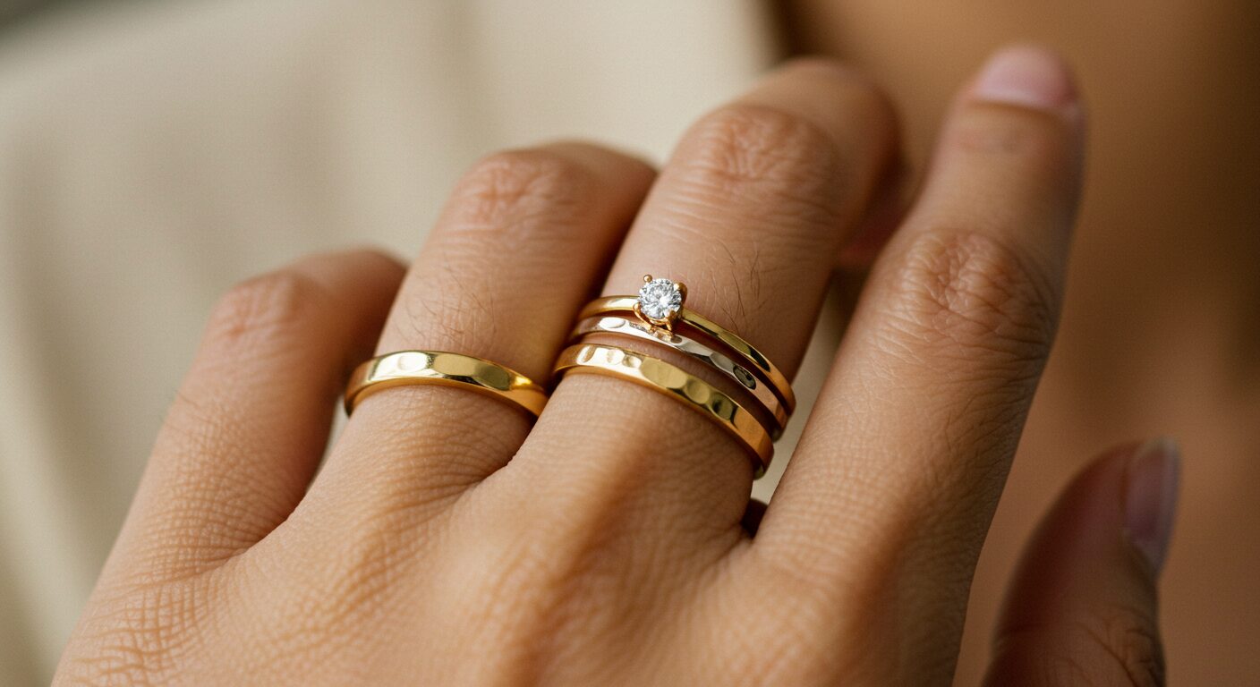 細めのリングを2〜3本重ねることで、抜け感を演出