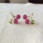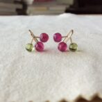 つるっとしたルビーでどうしてもつぶつぶピアスを作りたくて、作りました。